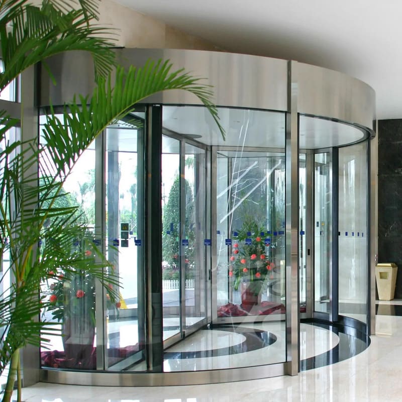 Curved glass doors are versatile, used in commercial entrances like revolving doors, residential sliding and front doors, internal partitions, and innovative prefabricated housing. They offer aesthetic appeal, energy efficiency, and privacy solutions, enhancing modern architectural designs with seamless indoor-outdoor integration.